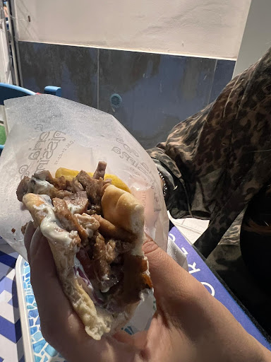 Il cibo è molto buono ogni volta che vado mi prometto di mangiare di meno ma mi ritrovo sempre a mangiare fino a riempirmi. Consiglio le Keftes, sono delle polpettine di pollo e manzo davvero buonissime. Consiglio anche i Souvlaki che sono spiedini che possono essere di pollo, maiale, pollo insieme al bacon. Questa volta ho preso direttamente il piatto Yamas che comprende 2 spiedini, Gyros (carne di maiale) con cipolla, peperoni, patatine, feta e yogurt. Quindi la foto degli spiedini pollo e bacon è della scorsa volta.