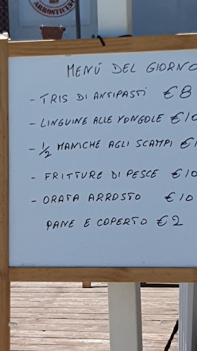 Menu FISSO di pesce 2 portate 20 euro. Bevande escluse. E fin qui andrebbe anche bene se non fosse che le portate praticamente da 10 euro l una siano imbarazzanti. Io ho preso un meraviglioso tris di antipasti che si componeva addirittura di 2 alici marinate sopra una fetta di pane, un altra Alice fritta con l uovo, una cozza gratinata e una ciotolina grande come una tazza da cappuccino con del cus cus e forse 1 gamberetto a pezzi(forse anche meno di uno) In seconda battuta ho preso una frittura che verosimilmente ha lo stesso prezzo e la stessa modesta qualità. Ho mangiato spesso in zona, e penso di aver beccato il ristoratore più caro, visto che tutt intorno a meno di 50 Mt ci sono altri 10 ristoranti che fanno le medesime cose (non antipasti così miseri perché non ne ho mai visti di simili) alla metà del prezzo. Aggiungo che il posto é anche carino ma 10 euro a portata quando gli altri li fanno a 5 massimo 6 euro l una identiche per qualità e quantità e inoltre mangio su tovagliette di carta da mensa scolastica, davvero mi pare un furto pagare così tanto. Ovviamente non serve dire che sono uscito più affamato di prima. Peccato perché il servizio ed il cibo non sono male, ma il prezzo é assurdo quasi quanto la risposta del titolare al momento di averglielo fatto presente: "ognuno é libero di andare dove vuole". Avrei messo una stella gia solo per la risposta del titolare che non ha provato neanche a spiegarsi o altro, ma mi dispiace per i ragazzi che son bravi. Però davvero ci sono una infinita di ristoranti li a due passi che sono molto più validi....