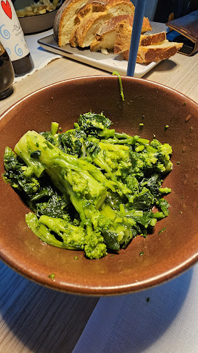 My friends described their swordfish as rather bland. My friend ordered sauted chicory as a side dish and was brought some sort of brocoli relative instead (as a professional horticulturist myself, I would know).