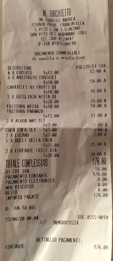Read moreSituato in un incantevole angolo circondato da ulivi, il ristorante Al Torchietto si presenta come un rifugio di tranquillità, perfetto per chi cerca un'esperienza gastronomica lontana dalla frenesia urbana. L'ampia sala, ben curata e pulita, offre un'atmosfera accogliente, ideale sia per una cena romantica che per un incontro tra amici. La disponibilità di Wi-Fi gratuito è un ulteriore tocco di modernità che non guasta. Il personale si distingue per professionalità e cortesia, creando un'atmosfera rilassata e amichevole che invita a godere appieno del pasto. Ogni dettaglio è curato con attenzione, dai bagni moderni e impeccabili a un servizio attento, un aspetto che spesso viene trascurato in altri locali. Il menu offre una selezione di antipasti di terra e di mare, semplici ma realizzati con ingredienti freschi e di qualità, che deliziano il palato senza sovraccaricarlo. I piatti sono presentati con cura, evidenziando la passione per la cucina. La grigliata mista è un vero trionfo, con carni di ottima qualità che si sciolgono in bocca. La carta dei vini è variegata e ben selezionata, permettendo di accompagnare ogni piatto con il giusto abbinamento. La possibilità di gustare un buon calice di vino immersi nella natura aumenta il valore dell'esperienza. Inoltre, il ristorante si distingue per la sua accessibilità, con entrate e servizi pensati anche per i disabili, e un parcheggio privato ampio e comodo. In sintesi, Al Torchietto è una gemma da scoprire, un luogo che promette non solo un pasto, ma un'esperienza sensoriale completa, perfetta per chi desidera fuggire dalla routine quotidiana e concedersi un momento di relax e buon cibo in un ambiente suggestivo. Consigliato a tutti coloro che cercano un'uscita culinaria...