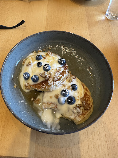 Read moreWe went there with the hopes of having a nice breakfast. 7€ for a tiny portuon of pancaces. Taste was good but the amount you get is redicules. Cappuchino was ok, but not exceptional. Staff is stressed, environment is not relaxing, but overcrowded and loud. I ordered a glass of water and got a tiny shot of water. Would have expected way more for the price. Not...