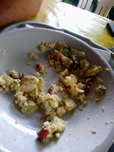 Read moreNON CHIAMATELA CARBONARA! Siamo incappati in questo Bar (perché chiamarlo trattoria come nell'insegna mi pare eccessivo) abbiamo chiesto una carbonara sperando di poterci sorprendente delle doti della massaia in cucina nonostante il posto non fosse promettente. Dopo 20 minuti ci è arrivata la più cattiva carbonara che ho mai mangiato nella mia vita...una frittata sbiadita (i tuorli??) con cipolla a pezzettoni prezzemolo e prosciutto...non pretendevo un guanciale sopraffino ma almeno una una pancetta si!! Da evitare come la peste Come prova inequivocabile la foto con i resti...