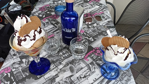 Read moreEsperienza di ieri pomeriggio. Siamo tre amici motociclisti e ci siamo fermati per mangiare un gelato. Già la cameriera presentatasi per sparecchiare le tazzine rimaste sul tavolo, nel momento in cui la stavamo aiutando a caricare il vassoio ci ammonisce dicendo che non si fa…🤷♂️ Invece di ringraziare…boh… Noi stavamo chiacchierando ed eravamo molto lontani dal protestare, in ogni caso poi arrivano i gelati ordinati. Pagamento alla consegna e cominciamo ad assaggiare il gelato. Subito mi rendo conto che il caffè è senza sapore dalla quantità d’acqua che vi era nel fondo. Tra l’altro una sola pallina di gelato e una quantità di panna montata esagerata per riempire. Lo faccio assaggiare all’unico che aveva preso un gelato diverso per avere conferma e lui annuisce. Acqua con un po’ di caffè… comunque non succede nulla, non protesto, non mi piace farlo, semmai evito il locale in futuro. Però la cameriera al momento di sparecchiare chiede se è andato tutto bene, allora ho dovuto comunicare che il gelato non mi era piaciuto e che era di gran lunga il peggior Ice caffè che avessi mai mangiato, io poi sono un estimatore quindi so dove mangiarlo davvero buono. La cameriera dice che le dispiace e la cosa finisce lì. Io del resto l’ho detto con tutta la calma del mondo, non ero per nulla arrabbiato e la mia non era un protesta… Ricominciamo a chiacchierare come se non fosse successo nulla, del resto abbiamo anche già pagato. Ma dopo 10 minuti si presenta una signora di una certa età, che visibilmente alterata e stizzita, senza scusarsi per aver interrotto chi parlava, esordisce guardando me e dicendo: ho sentito che si è lamentato! Al che io dico che non è corretto quanto dice visto che ho solo risposto ad una domanda diretta a cui non ho potuto tacere. Comunque ho spiegato che un ice caffè fatto con l’acqua non si era mai visto. Lei prima mi dice una frase che poteva risparmiarsi:” lo sa che il caffè si fa con l’acqua?”…ecco, io sono italiano e sono del settore ristorazione…il caffè buono si fa con l’acqua, ma sa di caffè… e quindi a quel punto sinceramente mi sono anche sentito un po’ attaccato con maleducazione. Ho ribadito che l’ice caffè proprio per antonomasia si fa col caffè perché deve sapere da caffè e lei mi dice che loro lo fanno col caffè americano quindi ecco il motivo…avevo ragione, ma la signora si è a sua volta lamentata dicendo che ero il primo a lamentarmi per questa cosa, ho ribadito che per me è un errore fare quel gelato col caffè americano e lei se ne è andata finché parlavo gridando un “buonasera!” Che sapeva proprio di maleducazione, dopotutto ho solo espresso un parere quando mi è stato chiesto, ma, alla fine me ne sono andato con l’amaro in bocca…a proposito…il gelatino...