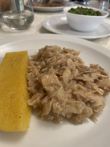 Read moreIl locale dove abbiamo mangiato è una grande sala molto rumorosa e affollata;toilette pulite ma vecchie che si raggiungono passando tutta la sala, asciugamani a scorrimento ma terminati già alle 13.00. Crostini con salse al carrello e preparati al momento a mani nude...dopo aver toccato carrello e piatti altrui.... tagliatelle ai funghi arricchiti di panna...costine di agnello durissime....antipasto gradevole. Comunque se uno è di bocca buona uscirà soddisfatto e rimpinzato. Peccato....perché il.personale è gentile, rapido...