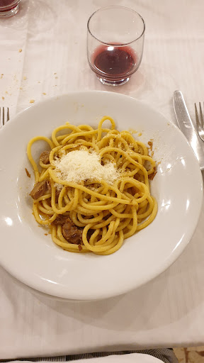 Read moreEsperienza mediocre quella di un pranzo domenicale in famiglia. I primi piatti, i Bigoli dei miei commensali ma in particolar modo le mie "Lasagne al ragù di anatra" erano buoni. Nulla da dire. Cosa che non posso invece confermare per i secondi. Le Bistecche "Robenrolls"?! erano cotte male, seppur intuendo che la qualità del prodotto ...c'era. La cottura ha rovinato tutto. Proprio una delusione, mi spiace. Confrontandoci con una signora che usciva dalla cucina, ci rispondeva che era una giornata particolarmente impegnativa. In effetti anche la confusione della sala strapiena non è certo un bel ricordo ma un bel mal di testa. Scelta discutibile quella di ammassare così tanti Ospiti in una sala acusticamente non adatta. Eccellente impegno delle giovani cameriere che erano sempre attente e professionali seppur con evidente poca...