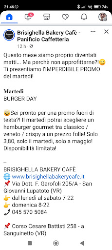 Read morebuongiorno mi spiace sia partita solo le due stelle senza una spiegazione I Vostri prodotti sono ottimi e mi servo sempre con entusiasmo e li decanto in ogni angolo del veronese ,soprattutto le vostre brioche . OTTIME !!!!!! Non posso togliere meriti ai prodotti da forno le Focacce BELLISSIME e BUONISSIME ma allora perché la recensione negativa? Semplice il sevizio ,sono stata li più volte in settimana ( ho i minuti contati)e mi piace a volte sedermi al tavolo a bere un caffè ,ma li vedo con le tazzine del precedente cliente e poi mi puliscono il tavolo con la manina ?? In settimana siamo tutti di corsa e il servizio è lento ,non è sabato o domenica che si può fermarsi 10 minuti di più c!!! Ecco le mie note negative ,spero sia una critica costruttiva perché io non smetterò ne di servirMi da voi e nemmeno di bere il caffè che nonostante "lungo" è buono ...un sorriso ogni tanto non...