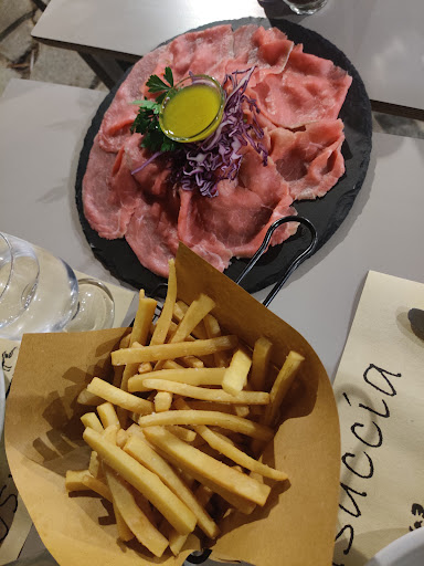 Friendly staff. Capable of adapting to our two languages (eng + french) and willing to teach us some critical italian (A++ friendly). Patient staff. No rude bone in their demeanor; extremely welcoming. The experience over exceeded my expectations. 100% recommend for any meat lover and fine wine lover. Staff also made excellent recommendations for wine based on our desired taste/preferences. This is a must visit. The view is stunning too. We went at night however it is still magical at night and to breath fresh mountain air. BBQ on sight is quite a delight. Highly recommend. Would give...