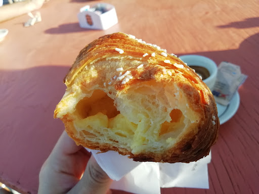 The view is amazing. It deserves 10 stars if it was allowed. Apart from that the service is good, friendly. Maybe if it was a bit more professional it could be perfect. We had some croissants with different fillings. They were well made, the filling was enough. Good quality of coffe and cappuccino. You could stay there the whole day without...