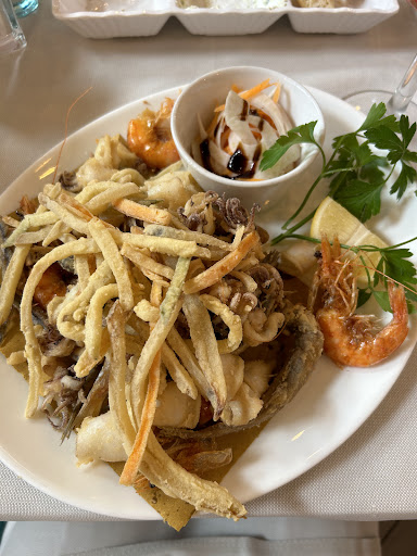 Read moreThe first impression wasn't that bad. The waiter was energetic and friendly, but right after getting the menu he grabbed my mother's purse without asking and put it on the seat next to her. The intended gesture itself was nice, but the unsolicited way he did it was pretty uncomfortable. Moving to food, I took Margherita, my father chose a mix course of fish, and my mother took some dish with fishes. About the food taste, it was pretty average or even below average. The pizza, in my opinion, was made from the cheapest ingredients, and I still feel indigestion and acid reflux. The course with mixed fish, maybe it was a translation mistake, but it should be a mix of seafood because there was much more (squid, seals, and mussels) than only fish. My mother was pretty satisfied with her dish, which was mixed fried fish. The biggest thing that surprised me in a bad way was the service. While we started eating, four of the waiters were standing about 2 meters behind my mother. Two of them pulled out their phones and, with the sound on, started watching TikTok or Instagram reels. From my perspective as a tourist, it seemed really unprofessional or even childish. I don't know if that is normal in Italy, but in my country, they would get yelled at. To clarify, I don't have a problem with a person taking a break, but don't take your break right next to the ONLY table...