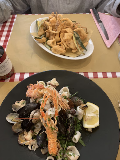 The food in no way met our (not particularly high) expectations, nor did it justify the price. The calamari, which finally arrived after 20 minutes, were clearly frozen and not fresh – and this in a coastal town like Sanremo – and had been fried in rather unappetizing oil. Meanwhile, I received my pizza, which was good – both the dough and the cheese. The second starter (grilled vegetables) and the tagliolini with lobster were, for some reason, brought to the table next to us, where new guests had just been seated. We were a bit puzzled – but maybe they had ordered the same dishes. After about three minutes, the food was returned, and I said to my partner: “Just watch, in three minutes they’ll bring us that exact food.” And unfortunately, that’s exactly what happened. The plate was new, but the lobster had clearly been gnawed on from one side. We pointed this out to the waiter – but he pretended to know nothing. My grilled vegetables were limp, more sautéed than grilled. The wine was okay. And to be fair, the portions were really generous.