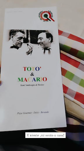 Read moreHo visitato questa celebre pizzeria / ristorante un martedì sera. Il locale si trova proprio sulla SS25 ed è dotato di ampio parcheggio, oltre che di rampa per consentire un comodo accesso anche alle persone con disabilità motorie. La sala ristoro è pitturata con varie raffigurazioni e frasi che ti catapultano, almeno mentalmente, nella bella Napoli. Da subito si viene accolti dal proprietario, il quale, con un caloroso "Benvenuto", chiama un cameriere che ti accompagni al tavolo. Il menù si presenta colorato e, grazie all'ausilio di foto, è molto comprensibile anche a chi non parlasse italiano (unico appunto: la dimensione dei caratteri utilizzata per gli ingredienti è un po' piccola). E' possibile scegliere tra una vasta selezione di antipasti, primi, secondi, pizze, pizze gourmet e dolci. Scegliamo una pizza genovese (fior di latte, ricotta, pesto genovese, rucola, scaglie di parmigiano) e una flower (fiori di zucca, fior di ricotta, fior di latte, parmigiano). Attendiamo non più di 10 minuti e con un simpatico accento napoletano ci viene augurato "Buon Appetito". A una prima occhiata le pizze sono belle; cornicione a regola d'arte e ripieno invitante. Passiamo quindi all'assaggio, ed è qui che tutte le aspettative vengono totalmente ripagate. L'impasto è talmente buono, che anche se me l'avessero servito con un solo filo d'olio sopra, avrei comunque messo 5 stelle. La cottura è uniforme, non si trovano parti più bruciacchiate. Gli ingredienti sono di prima qualità, abbondanti e ben distribuiti. Aspetto importante, le pizze non ci hanno creato alcun problema digestivo nelle ore seguenti. Soddisfatte, siamo quindi passate al dolce: un vesuviotto (zeppola ripiena di crema e sormontata di panna con salsa alla fragola) e tortino con ripieno caldo di cioccolato. La pasticceria è di loro produzione, non vengono proposti dessert scongelati. L'impiattamento è elegante e non mi sorprende affatto che ci siano così poche foto dei dolci sul web da parte di altri utenti (ma chi ha tempo di fermarsi a fare una foto quando dentro di te pensi solo "mangialo mangialo mangialo"). Non mi dilungherò in canti per lodarne l'assaggio, ma invito chiunque a lasciare un po' di spazio nel proprio stomaco per giudicare da sé (e vedrete che la pizza non sarà l'unica ragione per tornare). Il conto è perfettamento equo al cibo, alla qualità del servizio e al locale (inclusi i bagni, grandi e puliti). Per concludere, vorrei far sapere che l'aspetto che ho maggiormente apprezzato di "Totò e Macario" è però la gentilezza. Qui troverete solo persone che sanno fare il proprio mestiere: personale di sala simpatico ed educato, informale ma rispettoso, diretto da un proprietario che, con straordinaria galanteria, saluta ogni singolo commensale prima della sua dipartita e, se lo desidera, offrendogli anche un caffè. Grazie per la piacevolissima serata... non mancherò di visitare anche la vostra...