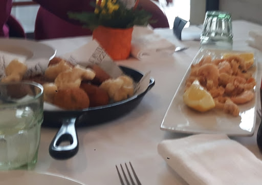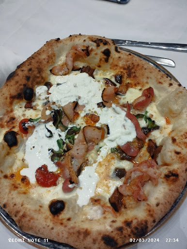 Read moreSono stata invitata in questa location molto bella esteticamente, molto confusionaria internamente. Nel complesso la mia esperienza è stata "normale" ci sono molti punti da modificare a mio parere, come per esempio: le sedute in plastica dovrebbero essere sostituite da poltroncine comode e morbide con lo schienale più alto rispetto all'attuale presente, nella zona interna adiacente l'entrata con vetrata spettacolare 😍in quanto si intravede il passaggio fuori. Se ci fossero più funghi a riscaldare l'ambiente stesso, staremmo sicuramente meglio, in quanto le pareti della sala sono rivestiti di verande di plastica abbassate ma non del tutto sul pavimento (10/15 cm di altezza adiacenti i piedi..) cui lasciano passare il vento, ovvio che mi raffreddo i piedi non mi vivo il resto della serata in tranquillità perché mi congelo, dovrebbero inoltre posizionare più appendi abiti all'interno della sala perché sinceramente parlando..ho trovato molto scomodo dover appoggiare il cappotto sullo schienale della sedia temendo anche che i camerieri (al cambio piatto o forchetta) potessero sporcarmi. L'ambiente è 3 stelle come il servizio. Io credo che se vuoi capire la pulizia del ristorante DEVI necessariamente notare come vengono tenuti i servizi igienici, bè la situazione è discreta, comprendo lo stress del weekend, ma è proprio in questi momenti che ci si impegna ad essere impeccabili, perché il cliente desidera entrare in ambienti confortevoli e non altro... Il cibo lo considero 4 stelle anche se c'è da migliorarsi (-), il menù pizza, con i ripieni e i fritti è stato fantastico. Come si nota dalle foto le pizze sono molto condite e grandi al punto giusto pur essendo singole, questo è stato moooolto gradito e la cottura è stata fatta alla perfezione. Ci ritorneremo 💕 sperando di trovare...