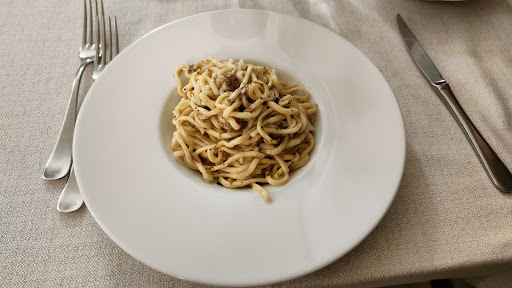 Read moreSituato a Sant'Anatolia di Narco, facilmente raggiungibile dalla strada extraurbana Flaminia Nuova prendendo l'uscita direzione Cascia Norcia, il locale si presenta con un arredamento curato, elegante, accogliente restituendo così un'atmosfera calda e di grande tranquillità. Per quanto riguarda la cena, abbiamo scelto di iniziare con due porzioni di strangozzi al tartufo. Poi abbiamo proseguito due contorni: patate "del baffone" e peperoni. Successivamente, come dolci, abbiamo optato per una porzione di pastiera e una crema catalana entrambe di produzione locale. Per terminare due caffè. Acqua e un calice di vino rosso come bevande. Tutti i piatti erano buonissimi e risaltavano con armonia i sapori. La bontà della preparazione e degli alimenti è evidente. È un vero piacere gustare queste prelibatezze. La pasta era fatta in casa e il tartufo era ben presente nel piatto, squisita. I dolci erano veramente eccellenti e si notava la cura nella produzione. Buone le porzioni e il rapporto qualità prezzo è decisamente soddisfacente. Il servizio ha dimostrato grande professionalità, efficienza e simpatia. Ci tornerò...