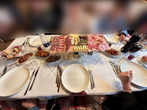 Posto estremamente curato, giardino stupendo, molto caratteristico, struttura mista con mattoni e legno. Bagno molto pulito nonostante l'afflusso enorme di persone, questo anche grazie al suo essere ""essenziale"" ma ricercato allo stesso tempo, il personale è cortese e attento, dimostra grande preparazione, nonostante la sala fosse piena erano attenti a tutti i tavoli per vedere se il pane fosse nel rispettivo cestello ed in caso cambiarlo, io ed il gruppo di persone con il quale ci siamo recati sul posto avevamo prenotato circa 2 giorni prima, una volta arrivati veniamo a sapere che di domenica è presente il menù fisso, dunque nessuna possibilità di scelta, io personalmente ero venuto per una tagliata ma ehi... Una volta che siamo qua che facciamo? Ci diamo dentro! Ebbene... Gli antipasti erano ottimi, le polpette poi... Spettacolari, come primi sono arrivati due tipi di pasta, trofie e conchiglioni, quest'ultimi conditi benissimo, davvero buoni, e adesso arriviamo all'unica incertezza della giornata, la carne... La carne era sicuramente valida ma nulla di che, forse la mia potrebbe essere una critica sterile, forse appunto perché essendo menù fisso, quindi per il tipo di cottura, forse per il tipo di carne ... Il punto è che non era nulla di che, la definirei mediocre. Avere la mediocrità sulla carne in un posto che fa di quest'ultimo alimento il suo punto forte non è proprio il massimo, le patate che accompagnavano la carne risollevavano il piatto, ben condite oltre che buone
