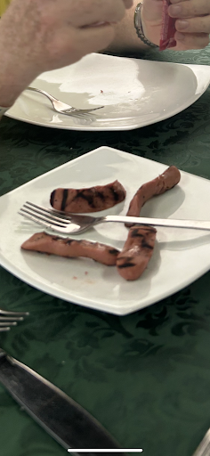 Wir hatten ein Steak und einen Fisch bestellt. Bevor das Essen serviert wurde, brachte man uns einfach so irgendwelche Würstchen.