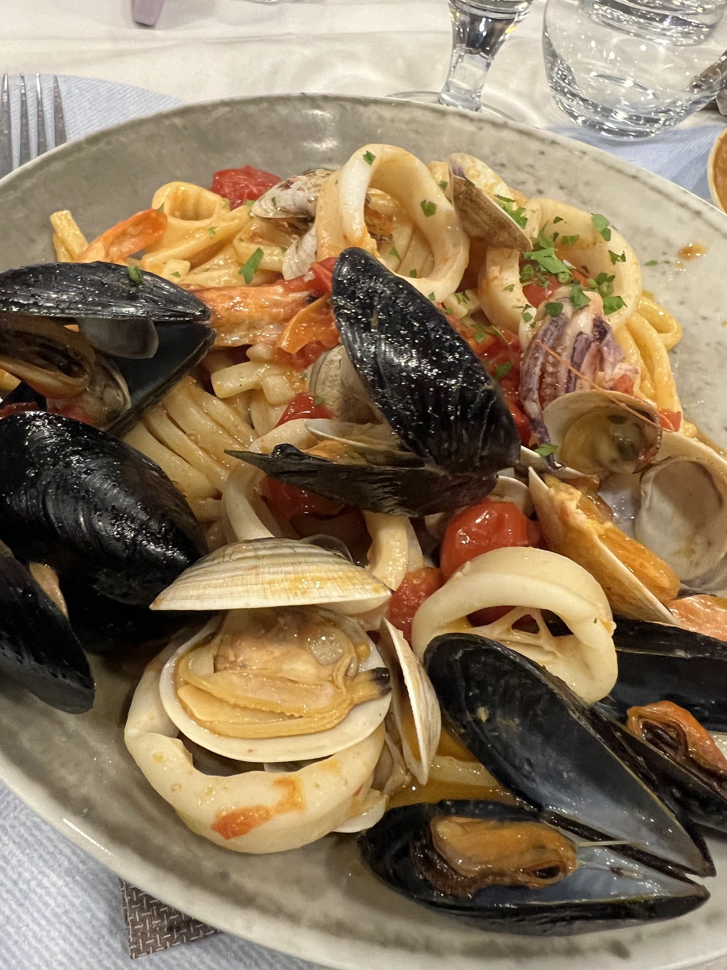 Per quanto riguarda il cibo, ogni portata è stata una piacevole sorpresa. Personalmente, ho iniziato con una mozzarella di bufala da 100g che era semplicemente eccezionale: freschissima e dal sapore autentico. A seguire, gli scialatielli allo scoglio erano un trionfo di sapori di mare, con ingredienti freschi e un condimento ricco e gustoso. Ho avuto anche la fortuna di assaggiare la tagliata di carne di manzo ordinata dalla mia ragazza, e devo ammettere che era squisita, tenera e cotta alla perfezione. Considerando la qualità del cibo e il servizio ricevuto, i prezzi ci sono sembrati assolutamente onesti. Siamo rimasti talmente soddisfatti che torneremo...