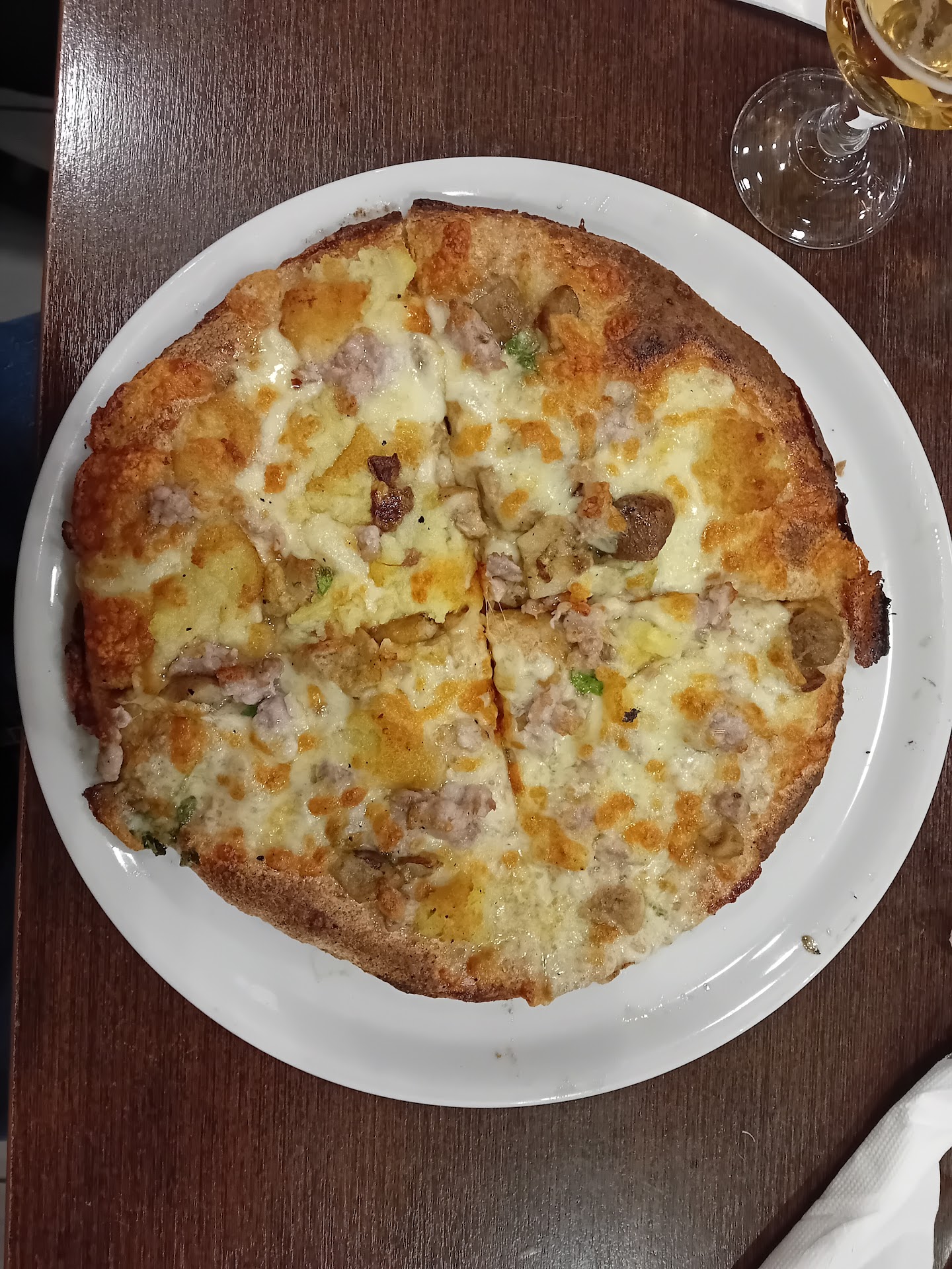Volevamo provare questa pizzeria da un po' di tempo ma non c'è stato mai modo. In occasione del 1 maggio e del fatto che c'era la possibilità di usufruire di 2 menù, io, la mia mamma e mio fratello decidiamo di andare lì a pranzo. Io e mio fratello abbiamo optato per il menù pizza da 13 euro che prevedeva un fritto misto (comprensivo di alghe, arancini, crocché, timballo di pasta, polpetta di melenzane e patatine fritte) , pizza a scelta (io bufalina, mio fratello wurstel e patatine) e dolce. La mia mamma invece ha optato per il menù da 20 comprensivo di antipasto (prosciutto crudo, bocconcino, fagioli alla messicana, involtino di melenzane, gateau di patate, polpetta di melenzane), primo (lasagna), secondo (scaloppina ai funghi), dolce. Le bevande erano incluse. Avendo prenotato, al nostro arrivo siamo stati subito fatti accomodare, ci è stato servito a centro tavola pane e pane pizza (2volte), i camerieri gentili e cordiali. L'antipasto e il fritto misto devo dire è stato bello abbondante e super soddisfacente. Le pizze erano belle saporite e giganti. La mia bufalina piena di sugo e mozzarella, proprio come piace a me. Anche la wurstel e patatine di mio fratello è stata bella saporita. La lasagna e la scaloppina di mia mamma anche buone. Il dolce era un pan di spagna con crema e fragoline. L'unica nota negativa potrei dire che è stato il fatto che nonostante avessimo chiesto una Coca cola a vari camerieri, non è mai arrivata, finché non è andato mio fratello personalmente a prenderla. A fine pasto ci è stato servito un buon caffè. Era presente anche il karaoke. Esperienza più che soddisfacente, siamo molto soddisfatti, ottimo rapporto...