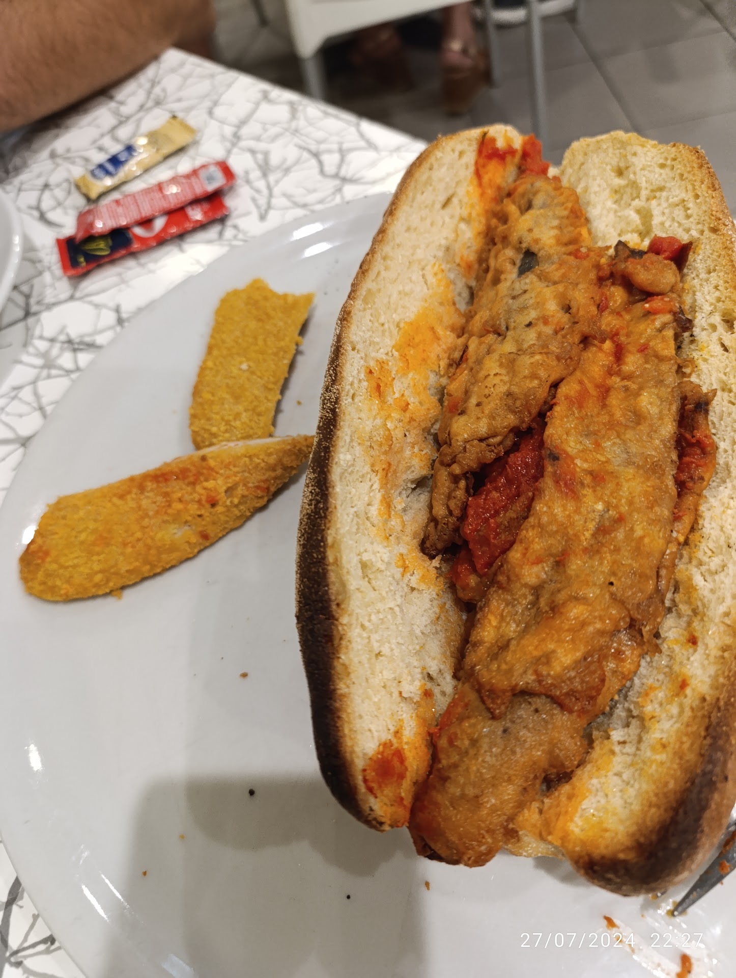 Ordino un panino cotoletta e parmigiana. Mi arriva un pezzo di pane croccantissimo, con una cotoletta decongelata (avevano quelle di carne in vetrina all'interno) e la parmigiana è in sostanza composta da melanzane fritte assemblate e praticamente senza sugo. La cameriera risponde: "Ma è sabato". Sconsigliato assolutamente