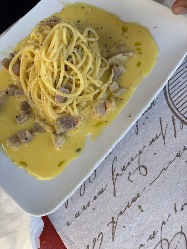 Sono rimasto poco soddisfatto. Il condimento nella pasta scongelato da poco, mancava la panna. Rapporto qualità-prezzo basso x un ristorante di questo livello. Considerando poi che dal momento in cui mi sono seduto i camerieri non sono venuti a prendere l'ordine in tempi congrui ma sono dovuto andare io da loro. Aggiornamento alla risposta dello staff.. Mi dispiace non sono io la persona della quale state parlando e non ho ordinato tutta quella roba, non mi sono mai lamentato di niente anzi ho detto alla cameriera che andava tutto bene per gentilezza, anche se pensavo il contrario per cui mi sento di togliere altre due stelle. Non vi consiglierò di sicuro .( per chiarire ho preso un tortellino a fumè una birra media un caffè per un totale di €15,50, Mi ci è voluto un po'...