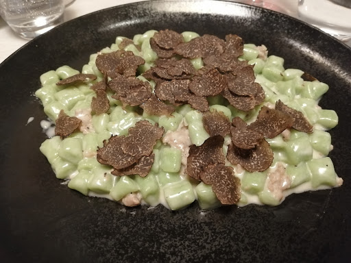 Read moreBella location, la statale di fianco non percepita. La sala all'ingresso è più affollata, o per lo meno lo era questa domenica, forse per un evento, non saprei.. Nella stanza del camino si stava meglio, tavoli più larghi e distanziati, sala arredata con più gusto (lampadari fuori contesto. Un po' di confusione durante il servizio, non abbiamo mai capito chi era il nostro cameriere e hanno preso la comanda al tavolo arrivato dopo di noi (con dispiacere). Abbiamo dovuto fermare una cameriera per ordinare. Tanti piatti a base di tartufo servito in buone quantità . Frittata con tartufo buonissima. Polenta non molto tirata, forse più liquida per il formaggio ma buonissima! I primi anche. Gli gnocchi erano piccoli e verdi anche se non ricordavamo il dettaglio nel menù. Prezzi nella norma. Ci tornerei? Si, sempre a pranzo, ma non...