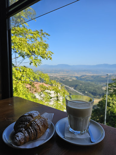 Read moreCi sono stato per la prima volta questa mattina per colazione e poi a pranzo con mio padre dopo una gita al bunker e la riserva naturale. Essendo un giorno feriale abbiamo trovato dei posti disponibili senza problemi. È facile trovare dei posti auto nei dintorni, dispone di un bagno e di posti sia dentro che fuori. Locale tranquillo e pulito dove c'è Sara,una ragazza molto simpatica e gentile che ci ha accolti. Abbiamo preso una bottiglia piccola di acqua naturale egeria e due calici di vino bianco,un tagliere piccolo di salumi veramente ottimi. E per primo due piatti di gricia tartufata con il guanciale bello croccante come piace a me, vi consiglio questo piatto perché è buonissimo! Dalle foto che ho pubblicato ci si può fare un idea di quello che abbiamo preso. Prezzi modesti e cibo ottimo. Anche il cappuccino e cornetto che ho preso di mattina,2€ e 34€ il pranzo. Mentre si mangia si può godere anche di un bel panorama. Ve lo...