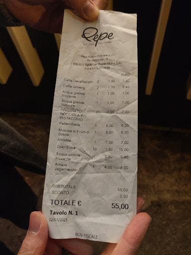 Sono certo che Pepe sia tra le cinque migliori pasticcerie dalla Campania e tra le migliori cento d'Italia. Ho girato molte pasticcerie , ma l'eleganza la bontà e perfezione dei prodotti offerti qui è difficilmente eguagliabile. Quando il fondatore era vivo a tavola veniva sempre offerta l'acqua liscia fresca , purtroppo non ho più ritrovato questa usanza . Spero vivamente che ritornino ad offrire questo servizio che li poneva su un gradino più alto rispetto agli altri competitor. Consiglio a tutti la pasticceria napoletana e le graffe in accompagnamento ad un dolce magari più complesso , proprio per apprezzare la bravura nel preparare prodotti semplice ed estremamente artefatti.