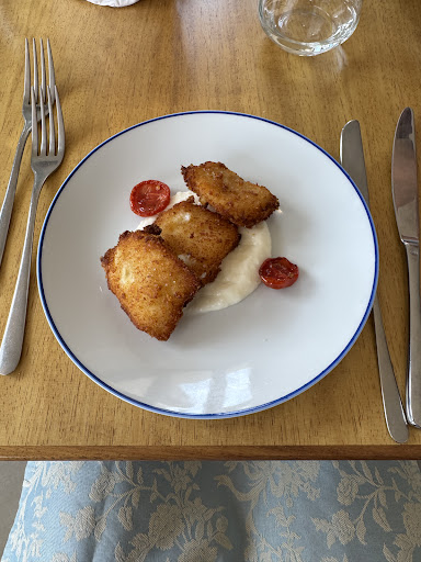 La sala era praticamente vuota, il che ci ha subito lasciati perplessi, considerando la buona reputazione del ristorante. Appena seduti, il cameriere ci informa che mancano diverse portate dal menu, restringendo di molto la scelta. Decidiamo quindi di affidarci ai suoi consigli, ordinando un primo e un secondo.