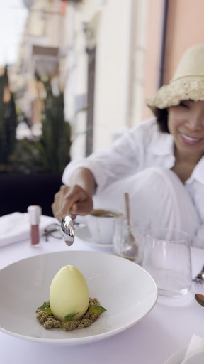 Then continued with “Essenzia siciliana” spaghetto with raw tuna and bottarga. And “il pescato alla brace” grilled assorted seafood as the main. To finish it off we chose the dessert in the shape of an egg made of white chocolate with a rich and flavorful orange ganache inside.