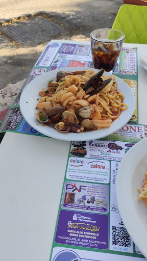 Read moreLocale con grandi potenzialità, posizionato in un luogo favoloso ma purtroppo gestito da un signore incompetente che dovrebbe solo andare in pensione: non è in grado di lavorare a contatto col pubblico, maleducato, arrogante, zoticone, irrispettoso e così via col resto dei sinonimi presenti in vocabolario. A quanto pare chiedendo in giro è risaputo che sia con questo bel carattere e leggendo le recensioni viene confermato. Ordiniamo due fette di pesce spada, un piatto di pasta e una frittura di calamari alle 13:40 (da specificare che il locale era mezzo vuoto). Dopo 50 minuti arriva solo il mio piatto di pasta. Io avevo già finito di mangiare da 5 minuti quando innervositi chiediamo informazioni per capire a che punto fossero gli altri piatti. Le cameriere non sapendo cosa dire facevano avanti e indietro dalla cucina dicendo che erano quasi pronti. All’ennesima richiesta (dato che non è normale che su 4 persone una mangia da sola e le altre guardano) stavolta ad un signore che sistemava sedie e tavoli vestito tutto sporco, egli si rivolge urlando lamentandosi che non dovevamo chiedere a lui (nonostante avessimo scoperto dopo fosse il proprietario) e che lui era sveglio dalle 5 che ha lavorato tutto il giorno e che in cucina hanno avuto problemi per cui se non volevamo aspettare potevamo alzarci e andare via. Rispondendo che se lo avessimo saputo saremmo andati via prima di sederci dato che avevamo un impegno alle 15 ed erano già le 14:45, lui continuava a rispondere in malo modo ad alta voce dicendo anche frasi esagerate. Finalmente sono arrivati gli altri piatti dopo più di un’ora di attesa anche se io avevo già finito e gli altri stavano iniziando… per cocludere il cibo non era neanche un granché…aspettare tutto questo tempo per poi mangiare male non c’è motivo! Specialmente se uno esce per rilassarsi e deve trovare dei porci ad accoglierti. Non ci andate mai neanche per il caffè. Poveri dipendenti sicuramente sottopagati e...