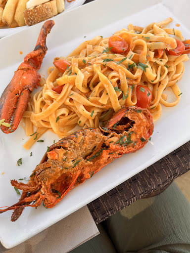 Read moreHaving eaten twice at this restaurant I can thoroughly recommend it. Very clean, modern and comfortable restaurant with views out over the sea. Menu is interesting and slightly quirky. We tried the burger in Roquefort and walnut sauce, grilled steak done to perfection, various bruschettas as well as a pizzas and salads. Instead of ordinary breadsticks they provide delicious strips of pizza dough garnished with tomato and sesame seeds. We like our food well flavoured so enjoyed the opportunity to add from the selection of olive oils, chilli flakes, black pepper as well as balsamic vinegar to our salad. (Salad was a bit light on the anchovies). The desserts were delicious, lemon sorbet and almond parfait with hot...