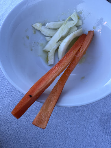 The €7 cover charge per person for bread (that was stale and tasteless) is a joke. And the crudités came with a dead fruit fly! (See photo). This not only questions hygiene standards but the quality of the offering versus the price.