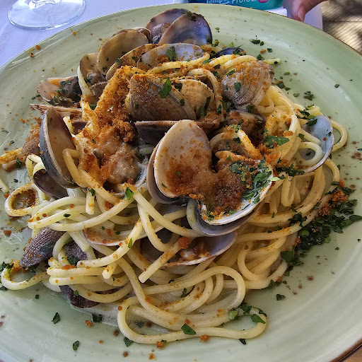 At first glance it looked like a nice place with a good vibe. Me and my partner were very excited as this was our first dinner in Santa Margherita. They have nice tables outside with a nicr view. The customer service and the atmosphere was fine. We started with the bread with olive oil. Some of the bread was rock solid and one piece was alteady bitten. If you are planning to go there, stick to the prepacked Grissini. The octopus salad was good, but the potatoes were uncooked and hard. The spaghetti with clams were delicious but the were so many emptey shells on the plate (probably just for looks), and so many broken that I almost broke a tooth. The octopus ravioli tasted past due. The Scaloppine limone were pretty tasty. Over all, we would not really recommend...