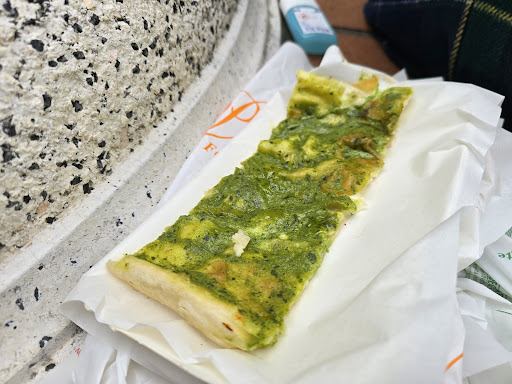 Bought a piece of the pesto Focaccia and the Focaccia topped with onions. Both very delicious items - the one with onions is on the heavier side.