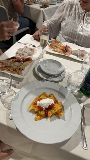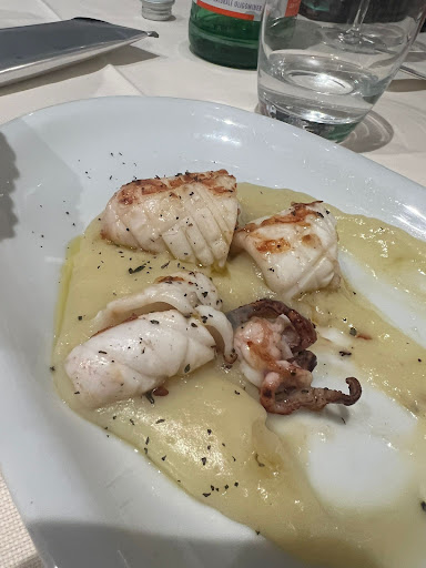 Steamed mussels were cooked correctly with just the right amounts of seasonings and all in balance. I inferred seasonings included water, salt, garlic, white wine, lemon chunks. Shellfish tasted clean and briney. Broth was so good you could want to soak bread in the broth. ( I did drown one crust of bread. ) Octopus and potato was tender and tasty. Preparation of seafood lasagna was amazingly good. Seafood lasagna was house made pasta sheets barely thicker than writing paper lightly stacked with a delicious filling. Mixed fried seafood was just like I expected: super fresh calamari with shrimp and fish with a light coating and salting. Salad was freshly assembled with tableside dressing of salt, olive oil and balsamic vinegar. It was simple and clean tasting. It is a dignified establishment both in demeanor and decor. Restaurants like this would be prohibitively expensive in USA. Preparation of seafood lasagna was amazingly good. Although not cheap it was a great value because the food is so good. It is definitely worth the money for a food...