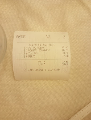 Read moreOne of the worst restaurant experiences we’ve had in Italy. Do not go here as you’ll have a terrible experience. After I had finished my meal with still wine in my glass, while my boyfriend still were eating, I wanted to use the restroom. I walked up to use it, and was refused to use it in an absurdly rude way. All they say is “no, you can’t use it, we’re closed”
