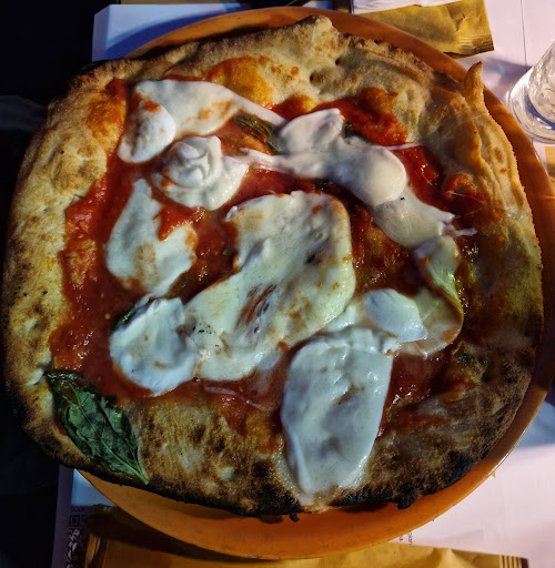 Una pizza straordinaria, che conquista già dallo sguardo: impasto perfettamente lievitato, con un cornicione alto, soffice e ben cotto, punteggiato dalle tipiche bruciature del forno a legna. La base bianca accoglie una generosa quantità di mozzarella filante, pomodorini freschi e basilico. Ogni morso è un equilibrio tra dolcezza, cremosità e fragranza. A rendere l’esperienza ancora più piacevole, un servizio impeccabile: i camerieri, tutti giovani e simpaticissimi, ci hanno accolti con un sorriso sincero e grande disponibilità. Il servizio è stato sorprendentemente veloce, senza mai risultare frettoloso. Una serata perfetta, dove alla qualità della cucina si unisce l’attenzione all’ospite. Torneremo...
