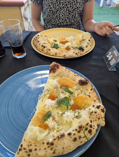 Posto meraviglioso a partire dal locale davvero molto bello … il personale e il proprietario non ne parliamo proprio super socievoli disponibili e pronti ad aiutarvi in ogni richiesta/capriccio…super!!! Ma ora passiamo al cibo cosa davvero molto importante…. Perché non so se sono in grado di esprimere la bontà di ogni singola portata, ho iniziato con una frittatina cacio e pepe da panico un esplosione di sapori l aggiunta esterna di pere un tocco d gusto ed eleganza ogni sapore non copriva assolutamente l altro mio marito ha preso anche la frittatina alla carbonara (non ho potuto assaggiare per perché sono in attesa) ha detto che l ha preferita alla cacio e pepe era completamente una bomba di pasta alla carbonara fantastica ne avrebbe mangiate altre 3 ma abbiamo preferito continuare con dei crocchè e anche qua che ve lo dico a fare ovviamente tutto fatto a mano fresco non c è nulla d surgelato un crocchè super saporito con patate prezzemolo e nel mezzo abbondante formaggio filante!!!! Come pizza ho preso una sottobosco con salsiccia crema al pesto,patate,mozzarella,bocconcini basilico un impasto sottile con il cornicione bello alto e soffice che riesce a sostenere un condimento così ricco da paura ero piena ma non ci siamo fermati abbiamo preso una pizza Fumè con mozzarella crema di patate dolci,pancetta,patate fritte dolci tagliate alla julienne e burrata affumicata spettacolare morbidissima croccantissima allo stesso tempo qualcosa di spaziale super consigliata per mia figlia super esigente l hanno modificata facendola solo con mozzarella crema d patate dolci e patate dolci fritte alla julienne (mai visto mia figlia mangiare così tanto in silenzio) abbiamo concluso con un pizza Smile la classica pizza bianca con mozzarella wiustel e patatine ma anche qua no loro t danno deverese scelte a partire dalla patatina che puoi mettere la classica confezionata o la fresca fatta da loro ma con la buccia e se non vuoi i wiustel puoi farla con la salsiccia e credetemi le porzioni sono super abbondanti…eravamo in 4 di lunedì sera siamo arrivati alle 19:30 il tempo di prendere le ordinazioni e nemmeno 10 min dopo abbiamo già iniziato con i fritti e così via da bere c siamo presi acqua naturale e frizzante per pulire il palato e non alterarlo con bibite per poter assaporare tutto al meglio… se volete andare nel fine settimana conviene prenotare e CREDETEMI NE VALE LA PENA per il prezzo che dire sono rimasta scioccata pensavo d aver speso un capitale e invece tra fritti, acqua, 4 pizze super farcite, coperto non abbiamo raggiunto i 20€ a persona 71€ totale avrei voluto assaggiare i dolci ma veramente ero piena … ma per niente appesantita anzi una volta uscita abbiamo fatto 2 passi sul mare e dopo poco sarei stata capace di andare e ordinare altre pizze … si perché non solo ci tornerò ma assaggerò altre 4 pizze diverse perché sono tutte da provare … complimenti ancora ai proprietari ai dipendenti non solo in sala ma anche in cucina...