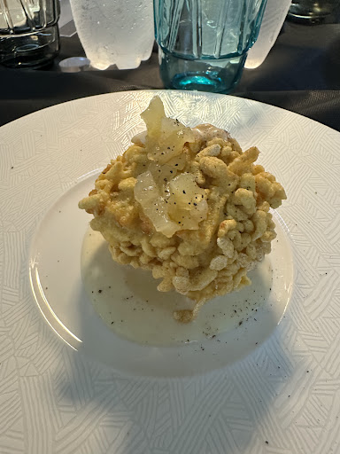 Una volta presa la comanda, le bevande e il ghiaccio sono arrivati quasi istantaneamente. Dopo altri 15 minuti, sono arrivati i fritti: un crocché e una frittatina cacio e pepe. Entrambi erano ben fritti, anche se il crocché avrebbe potuto essere leggermente più salato, ma questo è un gusto personale. La frittatina cacio e pepe non era fatta con i bucatini come tradizione, ma sembravano essere spaghetti spezzati. Nonostante ciò, il sapore era predominante e si poteva apprezzare il gusto del formaggio e del pepe.