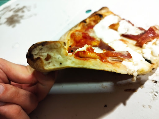 1)una pizza dop burrata che è arrivata con il cornicione piatto, lievitazione da impasto da 2 ore e soprattutto GOMMA immangiabile, praticamente nulla a che vedere con le foto. Ma dico, magari è stato un errore, capita, ma come ti viene di servirla? Più tosto la rifai. Il problema e che manco gli ingredienti sono fi qualità, prosciutto di Parma? Dall'odore da quanto è scaduto?