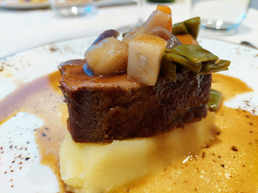 Wenn aus einem Menu ein Gang ausgesucht wird, da darf dann gerne 3-4 Löffel Puree auf dem Teller sein und etwas mehr Gemüse für stolze 22€ drauf sein. Die Portion war wirklich Micro-Mini. Wir konnten nur diesen Gang auswählen, da meine Begleitung Glutenallergikerin war und weder Ravioli, Gnoggi noch die Süssspeise essen konnte. Darum nur die Fleischspeise. Wir mussten danach noch Polenta mit Voressen essen gehen, da wir immer noch Hunger hatten. Das gesamte Menu, 4 Gänge, war für 46€ zu haben, der unser Gang hat 22 € gekostet und dies für Schmorfleisch, kein Filet. Gekocht war es sehr fein, es war ein Genuss, aber ich musste noch nie nach einem Essen für 22€ ein anderes Restaurant aufsuchen, damit mein Hunger...