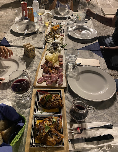 My family & I really enjoyed dinner here. Such a wonderful ambience, eating delicious local dishes, with excellent service. Restaurant is located in the historic church piazza, and our table was right in front of it! Kids really enjoyed this unique experience. I’ve been to a lot of different restaurants in different cities in Italy, and this restaurant is one of my favorites now. We tried homemade ravioli, homemade lagene & cici (that’s pasta with chickpeas), grilled variety of meat, grilled squid, & grilled tuna. All delicious! But the best part of our dinner experience was the antipasto appetizer - what a spread! Variety of meats, cheese, and olives, coupled with various dips. And homemade pickled pumpkin (this is the first time I tried this and now need to figure out how to get some back in America!), and homemade hot pepper spread(I like it hot 😁)! I’m attaching pictures, but pictures really don’t give you the right experience. You must try it for yourself! I highly recommend this restaurant and look forward to returning on my...
