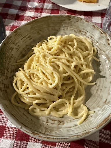 Don't judge this book by it's cover! I am a big lover of BBQ/grill/steakhouses, so naturally I was looking forward to my visit here as it "the second best restaurant" in Santa Marinella. Sure, it looked (and smelled) the part, but all of the various meats and sides of grilled veggies I tried were average at best. I did not finish any of the meats, not even the grilled veggies. Most of the mini lamb chops were inedible due to the fat content. Even the tiny pork skewers were chewy. The only seasoning found was salt. No marination, spices, herbs or sauces. I managed to get some classic American BBQ sauce to give it some more flavor. Small portions. The best dish was pasta carbonara with truffle. The dish was very rich, flavourful and the spaghetti of good quality, although slightly undercooked. The wine was fine, nothing special, the bread smelled great but a bit hard/dense/stale.