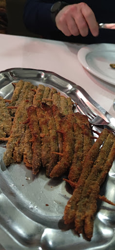 Pranzo della domenica in famiglia. L'offerta è abbastanza in linea con le aspettative: trattoria di cucina tipica piemontese con portate di quantità giusta, né abbondanti né scarse. C'era moltissima gente, il personale di sala era forse sottodimensionato e ha fatto quel che ha potuto. Apparecchiamento semplice ma funzionale. Buon vino sfuso. Abbiamo preso un vitello tonnato più che tonnato, con maionese. Acciughe al bagnetto veramente buonissime (ma che abbiamo dovuto contemplare un po' prima di assaggiare perché siamo rimasti in attesa del pane); pollo alla cacciatora per mio marito, davvero buono e morbido e con contorno di insalata; cotoletta impanata con patatine per il bambino, anche questa decisamente buona. Il mio fritto misto piemontese purtroppo no. Perché c'erano due olive ascolane che nulla c'entrano e mancava buona parte delle verdure pastellate di stagione: niente zucchine, niente melanzane, ma solamente il peperone. Non c'era l'amaretto, altro cardine di questo piatto. Ma soprattutto - e di questo sono rimasta veramente male e mi spiace persino per la gentilissima proprietaria del locale - perché la bistecca di pollo, secondo il mio naso, era "passata" e pertanto l'ho lasciata tutta nel piatto. Peccato inoltre per i grissini confezionati, che in una trattoria in provincia di Torino secondo me non dovrebbero entrare. Ottimi i dolci: un bunet e una panna cotta con topping al cioccolato. Abbiamo speso 70 euro, che sarebbero stati giustissimi se il mio fritto misto fosse stato allo stesso livello delle...