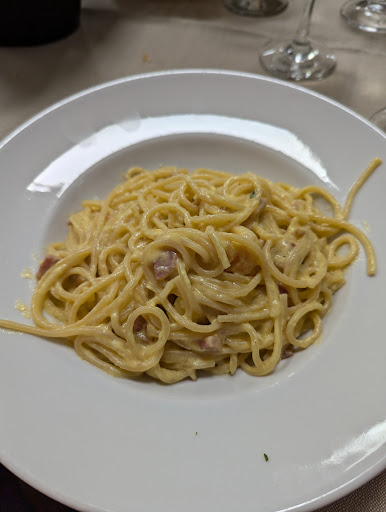 Read moreQuando racconterò ai miei cari del cammino di Oropa, sicuramente citerò sempre il nostro epico inizio avuto qua al Gabriella presso Santhià. Il ricordo che ci ha lasciato questo locale va oltre al semplice buon cibo, perché ogni singolo elemento ci ha dato la carica giusta per iniziare la nostra avventura verso Oropa. Inoltre, a chiunque dirà "Ma come, sei andato a mangiare pesce a Santhià?!" risponderò che è stata una delle migliori cene a base pesce che abbia mai avuto la fortuna di avere negli ultimi anni. E partiamo proprio dal cibo: abbiamo preso da dividere cozze con olio e aglio, uno spettacolo e servite in abbondanza come si vede in foto. Ho poi provato la carbonara di mare, ero scettico, lo ammetto, ma curioso di provare questo piatto: una vera e propria sorpresa, tutto era sopra le mie aspettative e mai avrei pensato che la crema della carbonara di sposasse così bene con il pesce. Per i secondo sono arrivati i grandi protagonisti: due amiche mie hanno preso un filetto di branzino fresco enorme ricoperto di granella di pistacchi e nocciole, la carne del pesce era un burro e gustosissimo, io e l'altra ragazza il fritto misto, per nulla unto e morbidissimo. Ci siamo anche divisi un polpo alla griglia con burrata, un altro accostamento che non pensavo funzionasse così bene insieme. Il polpo era tenerissimo. Ovviamente non ci siamo fatti mancare anche il dolce, tutto ottimo specie il sorbetto, e diversi giri di amari. Tutto questo ben di dio appena descritto ci è costato 45 euro a testa, un prezzo onestissimo vista la qualità della materia prima. Il personale è stata la ciliegina sulla torta: camerieri così gentili, solari, pronti alla battuta, sono rarità! Non mi sono mai sentito così ben voluto come qua, lo giuro, incredibili e professionali. Un grazie enorme a tutto il Gabriella per averci regalato...
