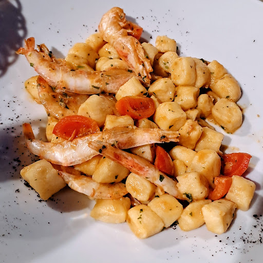 Primi altalenanti. Ravioli al nero di seppia buoni ma che avrebbero richiesto più pomodoro e trombette per equilibrare il piatto. Gnocchetti farinosi e soprattutto con gamberi di Sanremo sfortunatamente interi, invece che a tartare come sarebbe stato necessario per renderli parte del piatto.. spaghetti alla carbonara (piatto non ufficialmente nel menù, piu fatto per i bambini che altro, ma tant'è) obiettivamente impresentabili,con pancetta dolce, zero pecorino e parmigiano al tavolo.