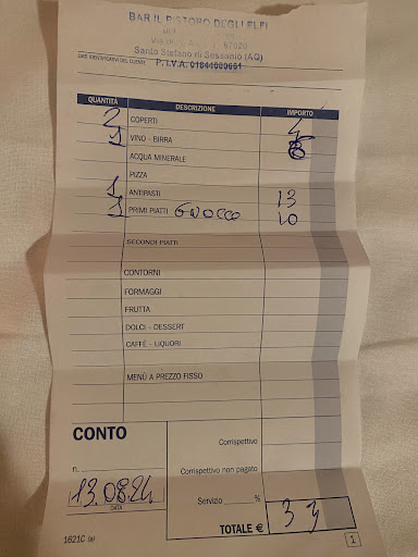 Io e la mia compagna Mary ci siamo avventurati al Ristoro degli Elfi a Santo Stefano di Sessanio, attratti dalla suggestione del borgo. Appena arrivati, l’atmosfera ci è sembrata subito strana: nessuno ci ha accolti, e il locale sembrava abbandonato a se stesso. Dopo qualche minuto, finalmente arriva la cameriera, che ci chiede se avessimo prenotato. Nonostante la prenotazione confermata, ci sistemano in un tavolo tra la cucina e il bagno, un angolo decisamente “romantico”. Le cose non migliorano con il vino: chiediamo un bianco frizzante, ma ci portano un mezzo litro di bianco fermo, caldo come una giornata d’agosto. Ma il vero momento clou è stato quando ci hanno servito il pane. Prendo un pezzo, lo metto in bocca e subito sento un sapore strano. Per sicurezza lo sputo e chiedo a Mary di provarlo: prima mi dice che sa di spezie, poi ne prende un altro pezzo e lo sputa immediatamente, esclamando che sa di detersivo! Sconvolti, lo facciamo presente alla cameriera, che prontamente lo porta via e ce ne porta dell’altro, sperando che almeno questo fosse “pane e basta”. Nel frattempo, la tensione tra la cameriera e il titolare cresce visibilmente. In un momento di massimo realismo magico, la cameriera ci si avvicina e, con tono basso e fare furtivo, ci consiglia di non ordinare nulla se non il tagliere di formaggi e i gnocchi al ragù, specificando di evitare il parmigiano per non rischiare di stare male. A quel punto, non sapevamo se ridere o scappare. Abbiamo optato per seguire il consiglio e ordinare il tagliere e i gnocchi. Mentre aspettavamo, i litigi tra la cameriera e il titolare diventano così accesi che, con nostro grande stupore, la cameriera decide di lasciare il locale, salutando i pochi clienti rimasti (in tutto quattro tavoli, compreso il nostro). Chiediamo al titolare di farci arrivare il tagliere insieme ai gnocchi, ma ci risponde, con tono rassegnato, che “a spadellare è solo lui, quindi non può”. Finalmente arriva il cibo: il tagliere di formaggi è senza pretese, e i gnocchi sono mangiabili, ma niente che non potessi preparare anche io a casa senza troppe difficoltà . Sperando di salvare la serata con un dolce, chiediamo cosa ci propongono, ma il titolare, quasi scocciato, ci comunica che non c’è nulla perché il giorno prima aveva avuto un addio al nubilato e non aveva avuto tempo di preparare dolci. A questo punto, decidiamo di concludere la serata e chiediamo il conto. E qui arriva l’ultimo colpo di scena: la linea, a detta del titolare, non funzionava, quindi ci chiede di pagare in contanti. Accettiamo pur di andarcene, ma dulcis in fundo, niente scontrino fiscale, solo una ricevuta che non è altro che un foglio d’ordine scritto a mano.