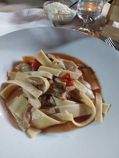 Read moreSiamo capitati in questo locale, per caso, seguendo le indicazioni di alcuni recensori(?) ed, effettivamente, era cominciata bene: bel posticino tranquillo e personale gentile. Poi abbiamo cominciato a mangiare. Antipasti, caldi e freddi, con i caldi che sarebbero stati anche gradevoli se solo avessero avuto l'accortezza di non riscaldarli nel microonde come al bar in pausa pranzo, il primo, tagliatelle e mezzelune ripiene, con la pasta cruda ed infine il misto di carne arrostita, riscaldato anche questo malamente. Non so' quanto sia costato il tutto (eravamo in quattro) perchè mi è stato gentilmente offerto ma, a parte il prezzo, sarebbe stato meglio un panino nel bosco (peraltro...