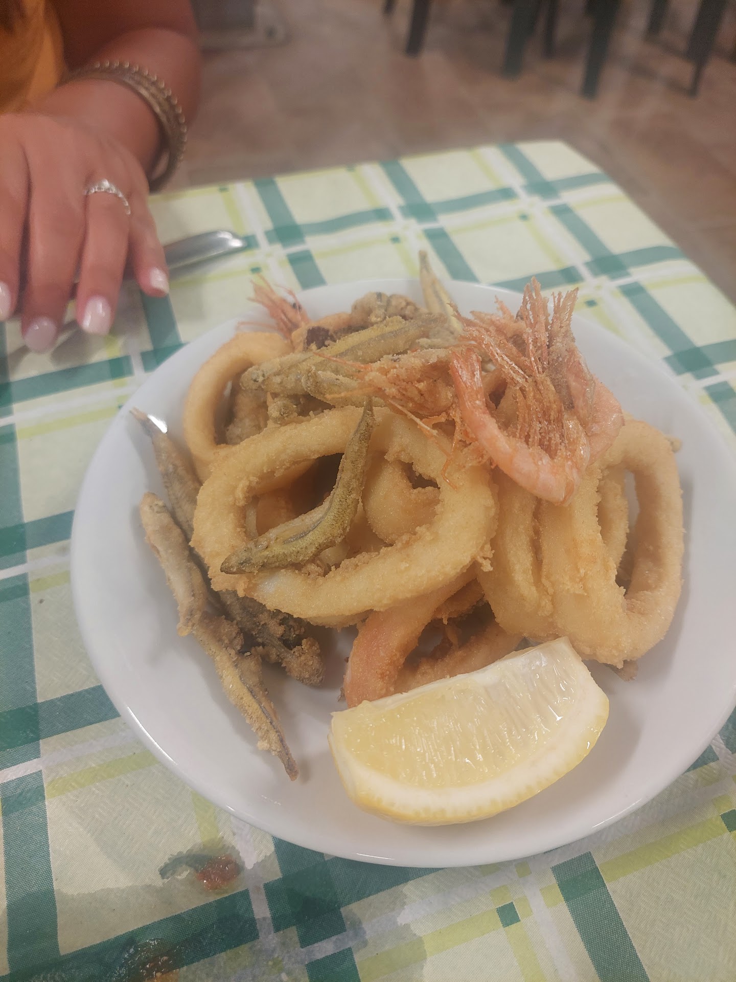 An unpleasant dining experience. Salty food and very poor presentation. The menu (25€ fixed price): mussels sautéed homemade pasta 'allo scoglio' (with mix seafood) mixed grilled fish white wine (0.5L) bottled water mirto liquor shot The mussels were salty and served without the classic lemon wedge. However, this was the highlight of the dinner. The pasta dish, massively undercooked and overly salted, was presented with one (1) baby size langoustine and 2 micro bits of what I guess was originally a whole calamari. The grilled fish consisted in one over cooked sea bream (not properly gutted), a baby eel (believe me you couldn't get any meat out of it) and 3 over cooked shrimps. Moving on to the drinks; The white wine had an unpleasant strong sulphite finish and probably the only thing that ticked a box was the water and the mirto shot. Waste of money in my opinion and a place that should be ashamed to call itself 'ristorante'. My advice: stay away from this...