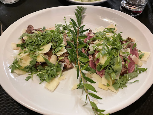 Parliamo del cibo. Decidiamo di andarci perché dalle immagini vediamo che è presente nel menu una grigliata di carne mista. Quando leggiamo il menù ci sono due grigliate una con solo carne di maiale e una con solo carne di agnello. Le grigliate miste di solito sono con diversi tipi di carne, non con diversi tagli di carne dello stesso animale. Ordiniamo la grigliata di carne di maiale arrivano 3 pezzi, duri, freddi e di qualità discutibile. Ordinaimo anche una tagliata con rucola e grana. Anche qui carne secca e gommosa. Prezzi da ristorante, qualità da sagra. Di solito non lasciamo recensioni, ma siamo davvero stupiti che questo ristorante abbia tali recensioni. Diffidate dalla...