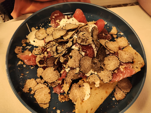 Read moreRespinti da un locale altezzoso di San Teodoro per un mancato Dress Code. Semplicemente io in pantaloncini e la mia compagna vestiti da spiaggia,ci imbattiamo in questo splendido locale. Accolti da personale professionale e disponibile,ci siamo accomodati all'interno del locale,da quel momento inizia la magia. Tutto è perfetto,i profumi,i colori,la gentilezza dei camerieri,in pochi minuti ci siamo sentiti a casa,come se fossimo clienti da una vita. Nonostante i nostri abiti fossero da spiaggia,siamo stati accolti e serviti come due ospiti speciali. Il trattamento riservato a noi è stato riservato a ogni persona all'interno del locale e neanche tempo di ordinare,che guardandoci intorno ogni piatto che usciva dalla cucina,sembrava un dipinto. Abbiamo mangiato ambe le proposte io carne e la mia compagna pesce,ed è con stupore e con le papille gustative alle stelle che scrivo questa recensione. Non solo si è mangiato un pesce fuori dal normale,fresco,con ingredienti in contorno unici della terra sarda,ma ogni impiattamento uscito dalla cucina era poesia,lo chef è un talento. Però la cosa piú straordinaria per me è stata,mangiare la piú buona e fresca battuta al coltello CON LA VISTA DEL MARE,non so se potete capire,ma mangiare carne di qualitá con un Roof vista mare,per me è la prima volta nella vita. Ma si sa la cucina non basta a fare funzionare un locale e noi abbiamo avuto la fortuna di essere serviti da Leonardo che da subito ci ha emozionato nel raccontarci i piatti e le proposte dello chef. Locale consigliatissimo,con una cucina impossibile da trovare a San Teodoro e d'intorni,SEMPLICEMENTE IL MEGLIO PER UNA CENA DI COPPIA. Sicuramente...
